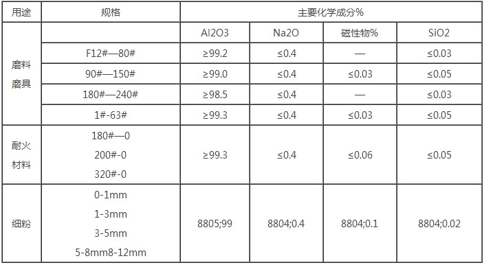 白剛玉以工業(yè)氧化鋁粉為原料,于電弧中經(jīng)2000度以上高溫熔煉后冷卻制成,經(jīng)粉碎整形,磁選去鐵,篩分成多種粒度,其質(zhì)地致密、硬度高,粒形成尖角狀,適用于制造陶 瓷、樹脂固結(jié)磨具以及研磨、拋光、噴砂、精密鑄造(精鑄專用剛玉)等,還可用于制造耐火材料 。